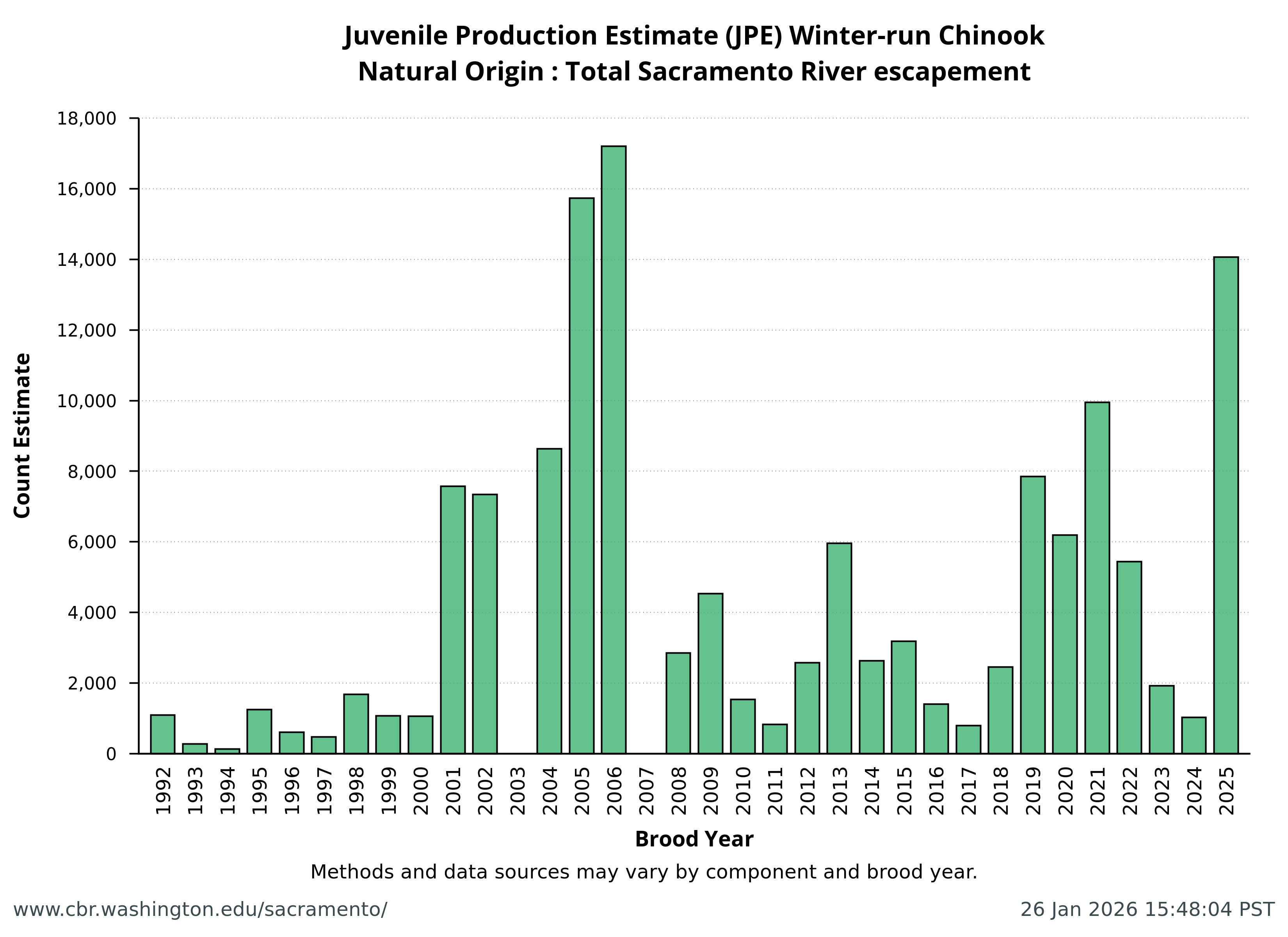 Juvenile Production Estimates (JPE) for Sacramento River Winter-run Chinook Salmon