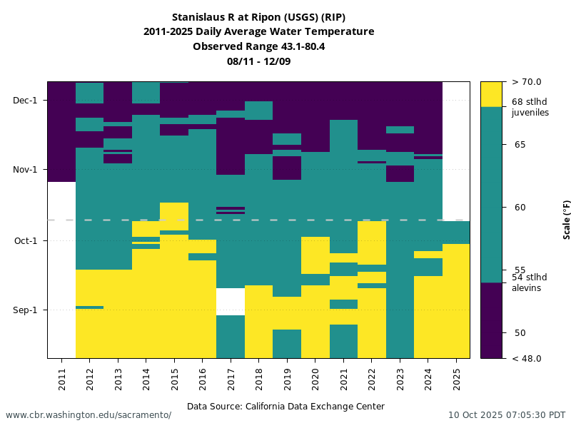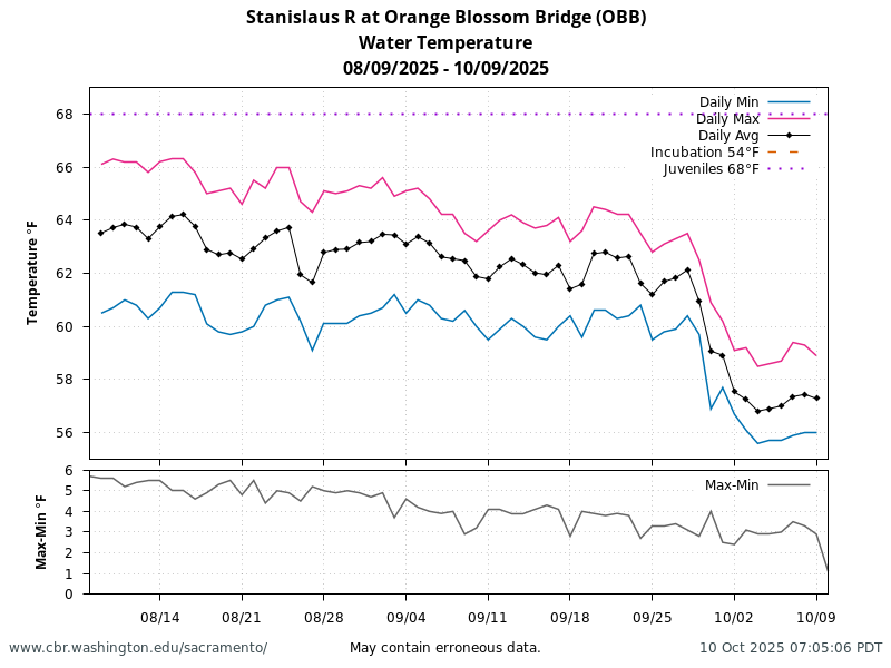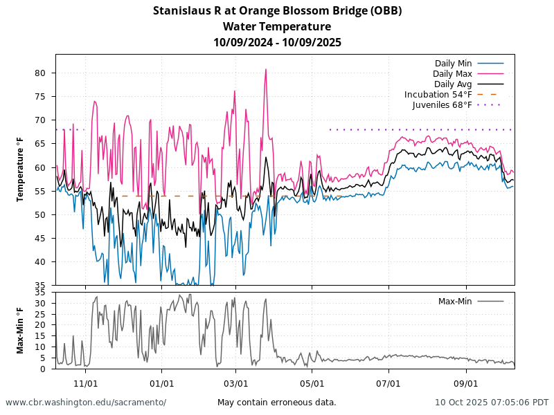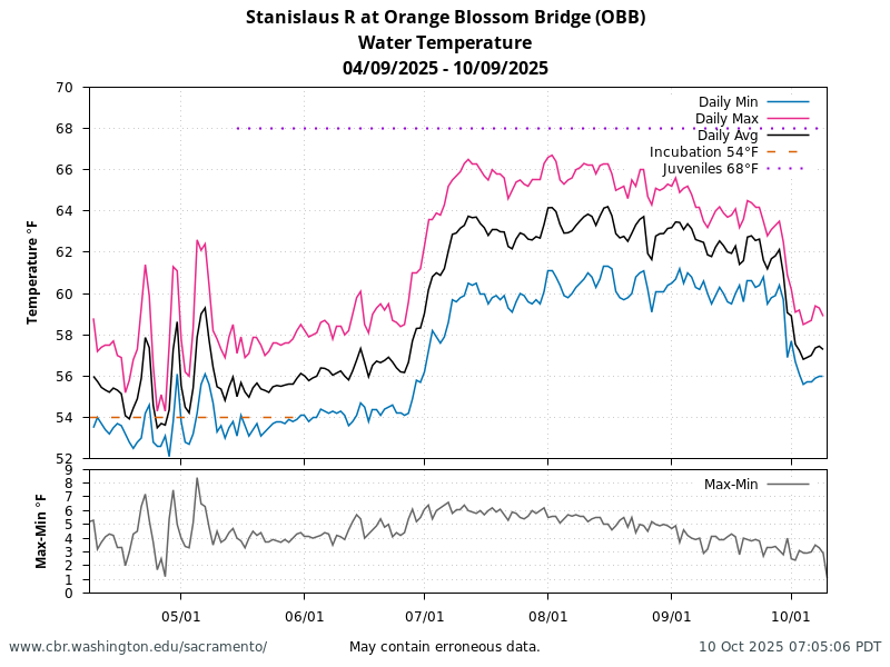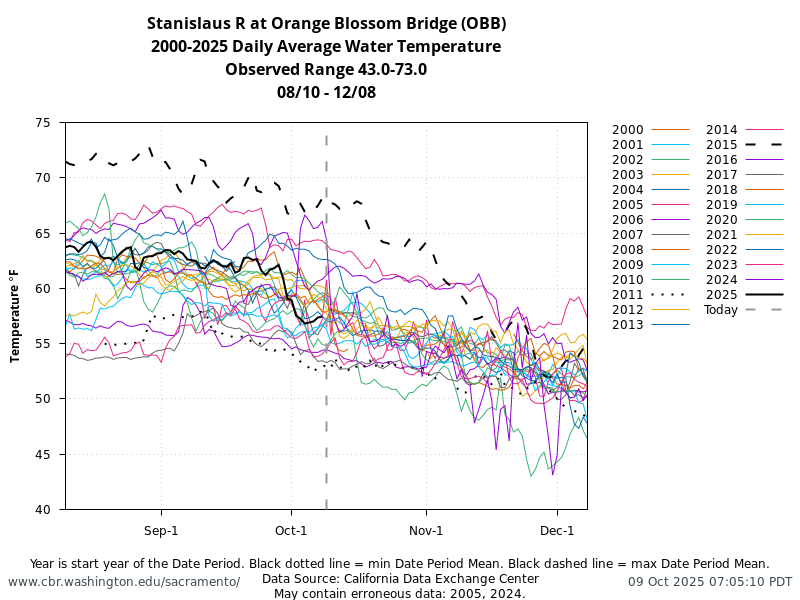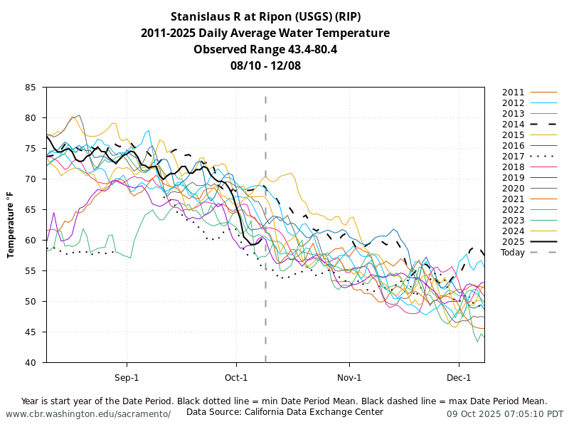 Stanislaus Watershed Select River Conditions for 2025-10-07