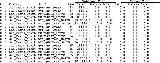 The SFM was designed to realistically simulate the mortality, sampling and distributional processes that result in observed patterns of stock-specific catches and escapements. The model stocks and fisheries in the SFM are not intended to be a complete and true representation of actual stocks and fisheries.