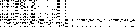 The SFM can incorporate any number of stocks. The current version contains 11 stocks -6 hatchery and 5 wild.